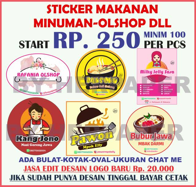 Beli stiker makanan/ logo minuman / stiker makanan/ stiker kripik/logo.